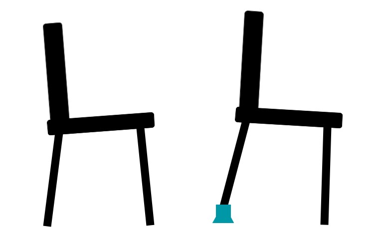 Mit den modularen Stuhlbeinerhöhungen kannst du deinen Stuhl neigen und so deine Sitzposition verbessern.